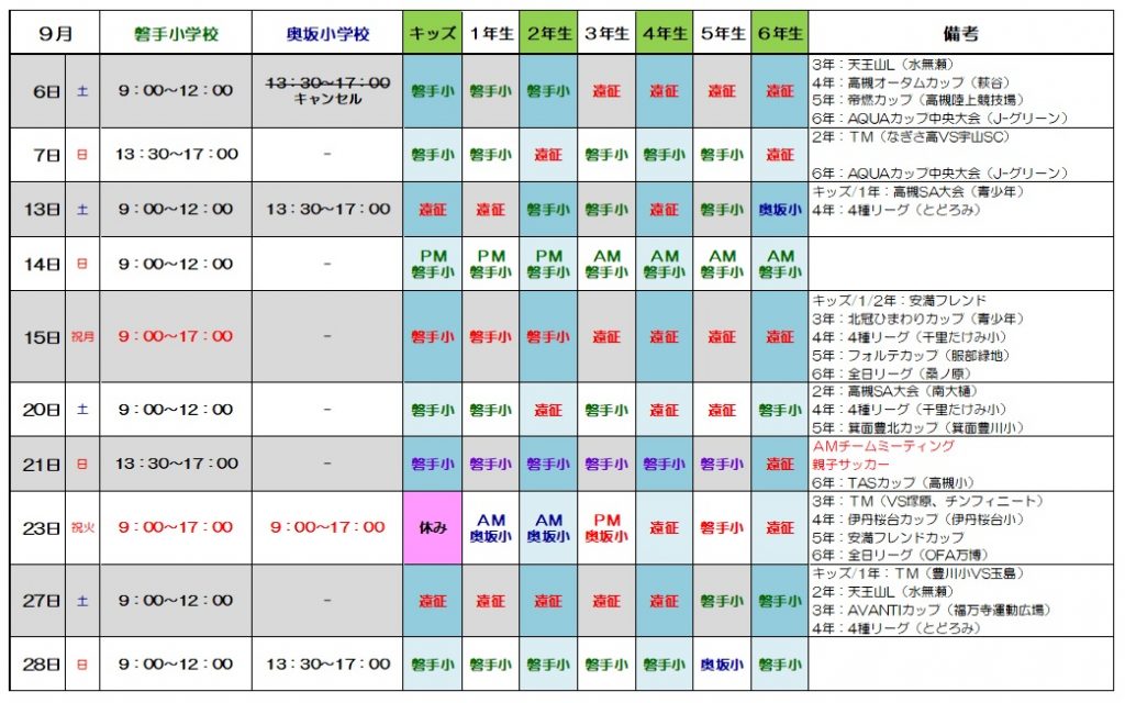 ◆注意事項◆【学校への入校時間】◇磐手小学校◇【AM】 8:30以降に入校可能【PM】13:00以降に入校可能◇奥坂小学校◇【AM】 8:30以降に入校可能【PM】13:00以降に入校可能【学校からの退校時間】◇磐手/奥坂小学校◇ 12:00練習終了⇒12:30までに完全退校 17:00練習終了⇒17:30までに完全退校
