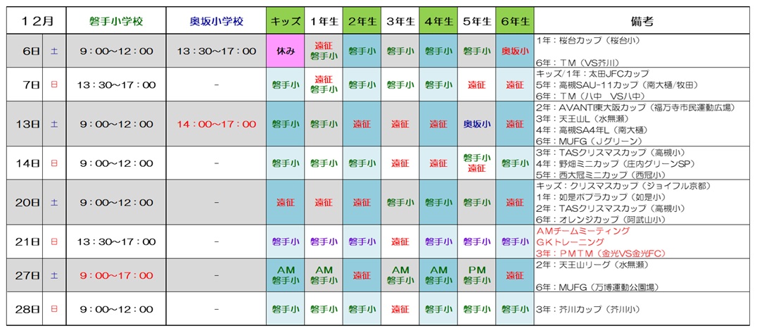 ◆注意事項◆【学校への入校時間】◇磐手小学校◇【AM】 8:30以降に入校可能【PM】13:00以降に入校可能◇奥坂小学校◇【AM】 8:30以降に入校可能【PM】13:00以降に入校可能【学校からの退校時間】◇磐手/奥坂小学校◇ 12:00練習終了⇒12:30までに完全退校 17:00練習終了⇒17:30までに完全退校